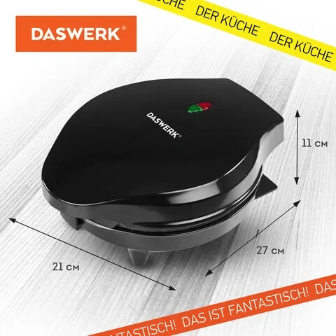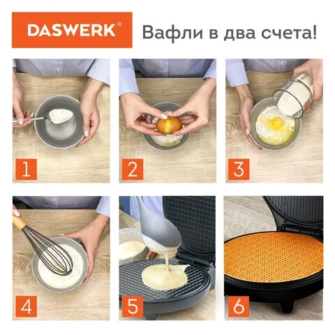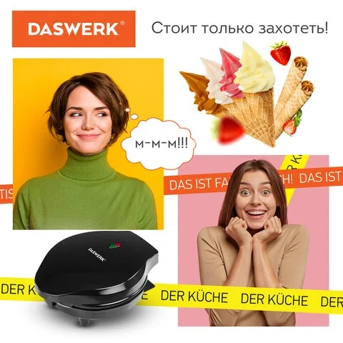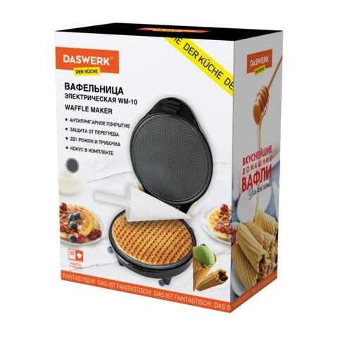 Электровафельница антипригарная для тонких вафель-трубочек и рожков, 1200 Вт, DASWERK, WM-10, 455656