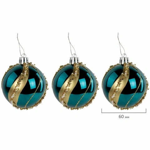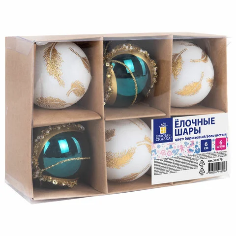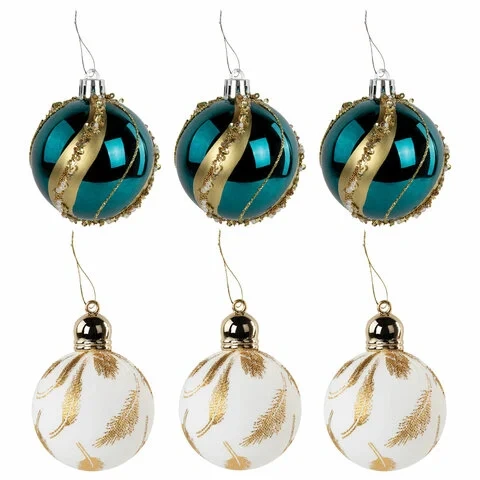Набор шаров Золотая Сказка Peacock бирюзовый-золотистый, 6шт/уп, пластик