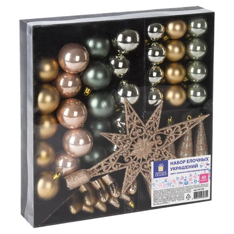 Набор елочных игрушек Золотая Сказка золотистый с перламутром, 43шт, пластик