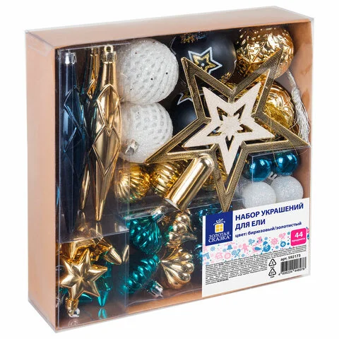 Набор елочных шаров Золотая Сказка Aurora 44ш/уп, пластик
