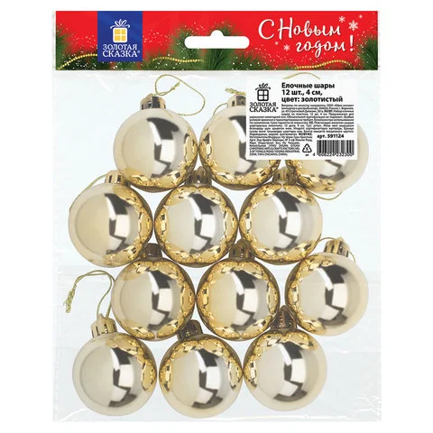 Набор елочных игрушек Золотая Сказка золотистый, 4см, пластик, 12шт