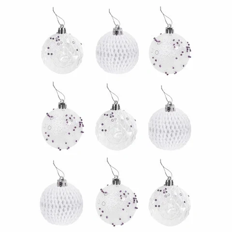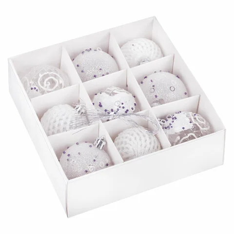 Набор шаров Золотая Сказка Crystal Silence белый-серебристый, 9шт/уп, пластик