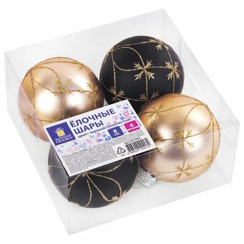 Набор шаров Золотая Сказка Aristo черный-золотистый, 4шт/уп, пластик