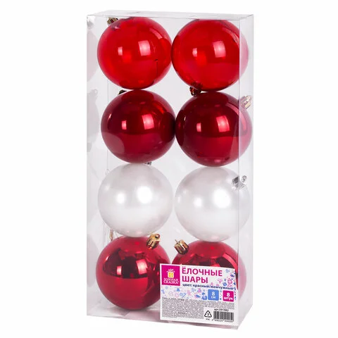 Набор елочных шаров Золотая Сказка Eden Colors 80мм, красный/жемчужный, 8шт, пластик