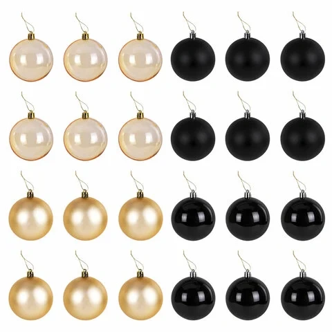 Набор елочных шаров Золотая Сказка Eden Colors 50мм, золотистый/черный, 24шт, пластик
