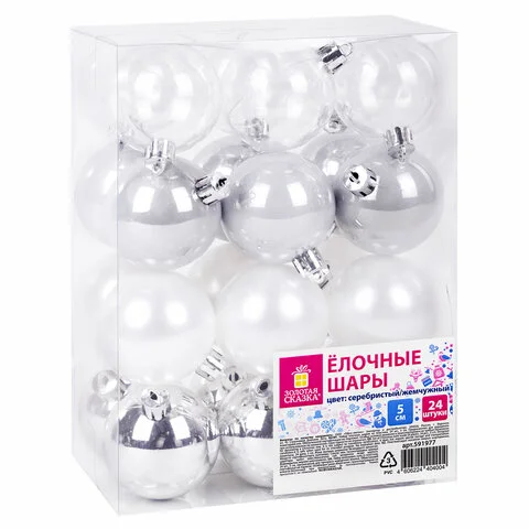 Набор шаров Золотая Сказка Eden Colors серебристый-жемчужный, 24шт/уп, пластик