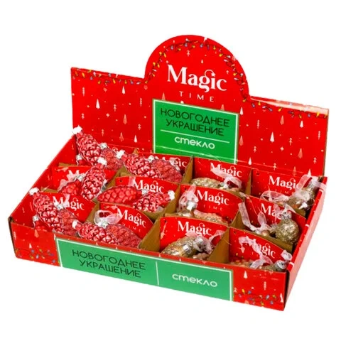 Набор елочных игрушек Magic Time Шишки золтой-красный, 3шт/уп