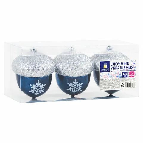 Набор елочных игрушек Золотая Сказка Желуди 9х8см, темно-синий/серебро, пластик, 3шт