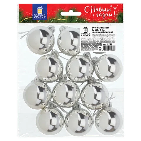 Набор елочных игрушек Золотая Сказка серебристый, 4см, пластик, 12шт