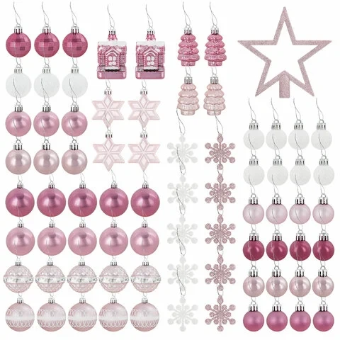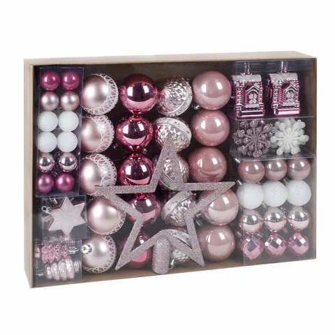 Набор елочных игрушек Золотая Сказка Elegant Pink 77шт/уп, пластик