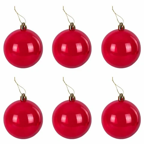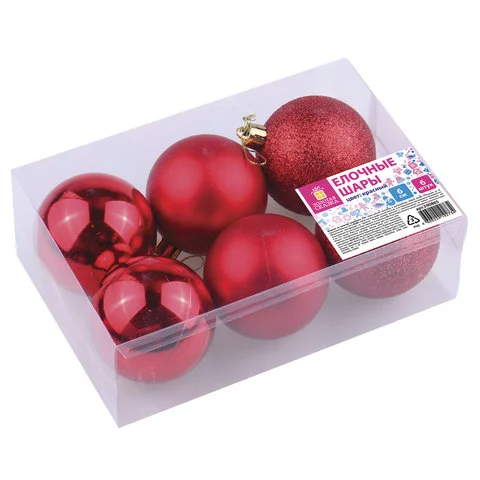 Набор елочных шаров Золотая Сказка с глиттером 60мм, красные, 6шт, пластик