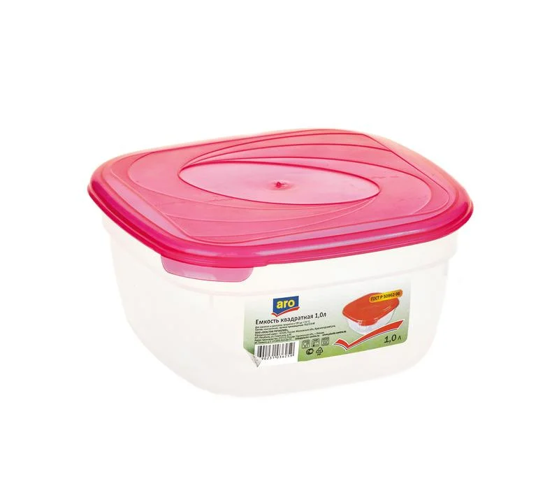 aro Емкость квадратная, 1 л изготовлена из прочного пластика. Посуда плотно закрывается пластиковой крышкой, которая предотвращает проливание и просыпание продуктов. Емкость можно использовать для хранения сыпучих продуктов: круп, сахарного песка, макаронных изделий. Вместительность 1 л достаточна, чтобы сохранить небольшую упаковку муки, пачку соли, крупы. Пластик отлично подходит для разогрева продуктов в СВЧ печи. Материал ??е потеряет форму и сохранит привлекательный внешний вид даже под воздействием горячего содержимого, нагретого микроволнами. К достоинствам контейнера относится и простота ухода. Достаточно вымыть его теплой водой с жидкостью для мытья посуды и просушить естественным путем или полотенцем. Также контейнер можно мыть в посудомоечной машине. К достоинствам контейнера относится и простота ухода. Достаточно вымыть его теплой водой с жидкостью для мытья посуды и просушить естественным путем или полотенцем. Также контейнер можно мыть в посудомоечной машине.
