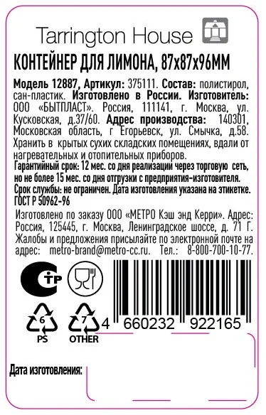 Контейнер пищевой Бытпласт для лимона 9 x 12см, пластик