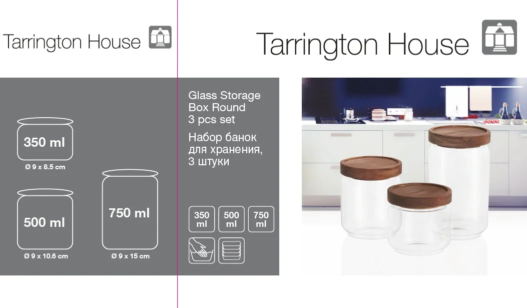 Tarrington House Набор банок для хранения 350мл+500мл+750мл