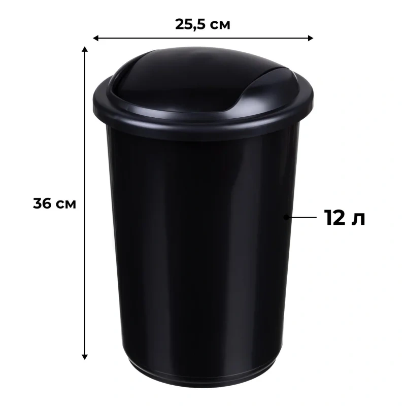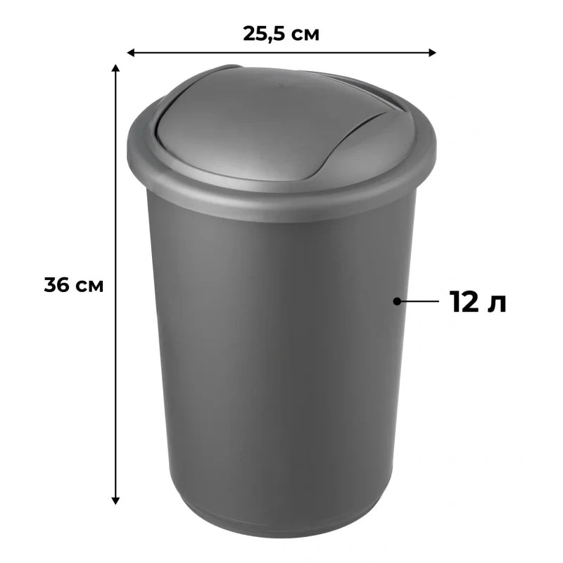 Мусорное ведро Uniplast 12л, черный металлик, с качающейся крышкой