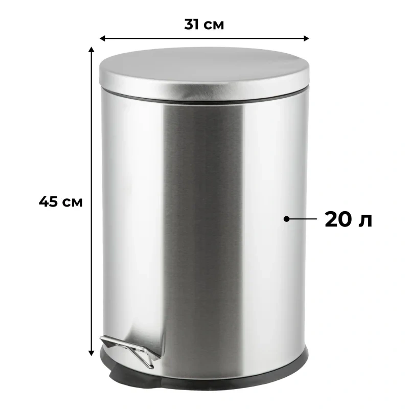 Ведро мусорное с педалью 20 л, матовое, нержавеющая сталь