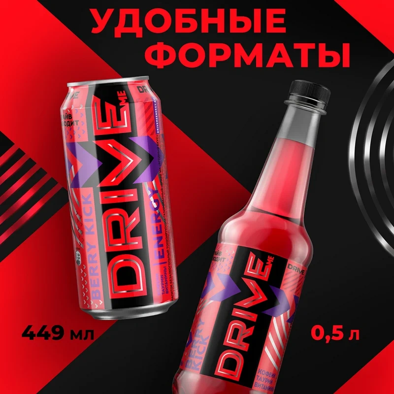 Безалкогольный энергетический напиток со вкусом ягод. Содержит кофеин, который стимулирует умственную деятельность, повышает скорость реакции и концентрацию внимания. Витамины группы B играют важную роль в функционировании нервной системы, участвуют в обмене веществ и энергии. Drive me заводит! Drive Me - это бренд для тех, кто всегда на драйве. Драйв - это то, что внутри тебя, где у других все выходит из-под контроля и трясутся поджилки, ты чувствуешь прилив сил и энергии. Ничто не сможет тебя остановить!