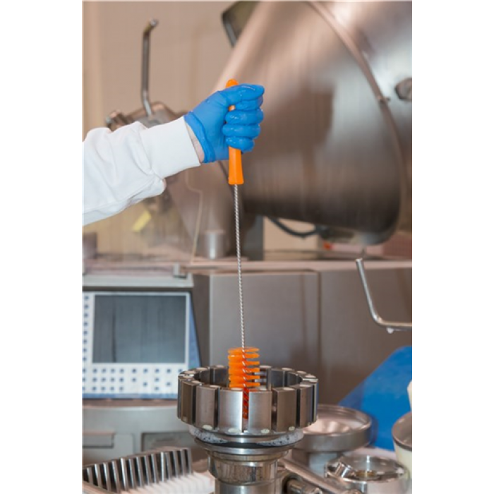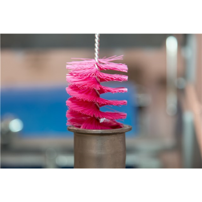 Этот ерш диаметром 40 мм используется для очистки труб малого диаметра и труднодоступных мест между различными частями оборудования. Ворс прикреплен к витому стержню из нержавеющей стали. Прочный, устойчив к химикатам.