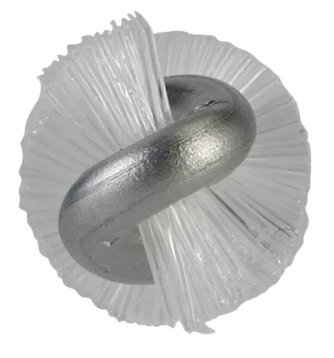 Это самый маленький по диаметру ерш. Используется для очистки труб малого диаметра и труднодоступных мест между различными частями оборудования. Ворс прикреплен к витому стержню из нержавеющей стали. Прочный, устойчив к химикатам. Используется для очистки насадок для колбас.