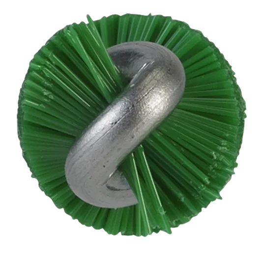 Это самый маленький по диаметру ерш. Используется для очистки труб малого диаметра и труднодоступных мест между различными частями оборудования. Ворс прикреплен к витому стержню из нержавеющей стали. Прочный, устойчив к химикатам. Используется для очистки насадок для колбас.