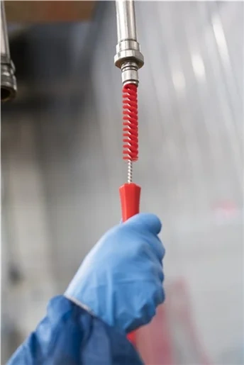 Используется для очистки труднодоступных мест между различными частями оборудования и словив в раковинах. Укороченная ручка позволяет сильнее надавливать на щетку, тем самым, усиливая чистящий эффект.