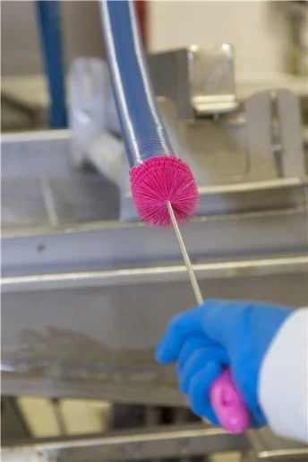 Это самый большой по диаметру ерш. Широко используется для очистки труб, словив и труднодоступных мест между различными частями оборудования. Ворс прикреплен к витому стержню из нержавеющей стали. Прочный, устойчив к химикатам.