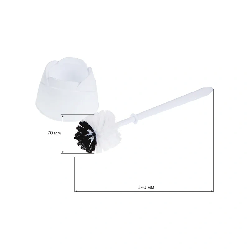 Высота ерша: 34 см. Диаметр щетки: 7 см. Материал: пластик. Цвет: белый. Вес: 118 г.