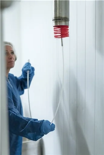 Ерш используется с гибкими ручками 53515 и 53525. Предназначен для очистки труб на молокозаводах, пивоварнях и предприятиях по переработке рыбы.
