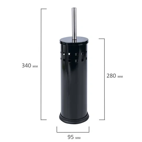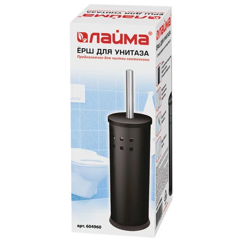 Ершик туалетный Laima с подставкой, черный глянцевый, d=10.5см, 38.5см