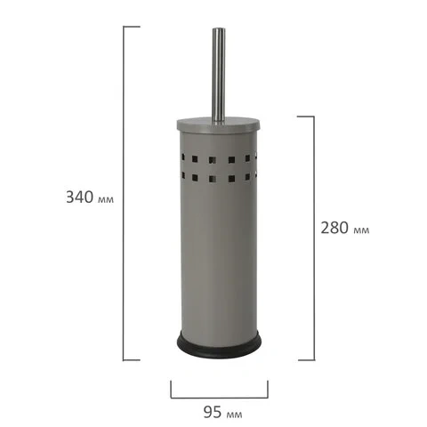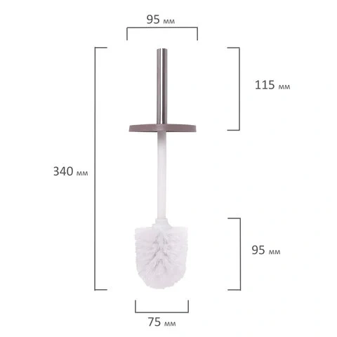 Изготовлен из металла с порошковым покрытием (серый). Диаметр подставки - 9,5 см. Диаметр щетки - 8 см. Высота - 34 см.