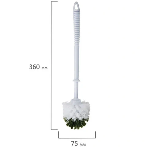 Изготовлен из высококачественного пластика белого цвета. Диаметр щетки - 7,5 см. Высота - 36 см.
