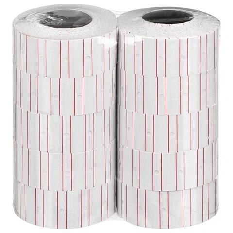 Этикет-лента 21х12 мм, прямоугольная, белая с красной полосой, КОМПЛЕКТ 10 рулонов по 1000 этикеток,