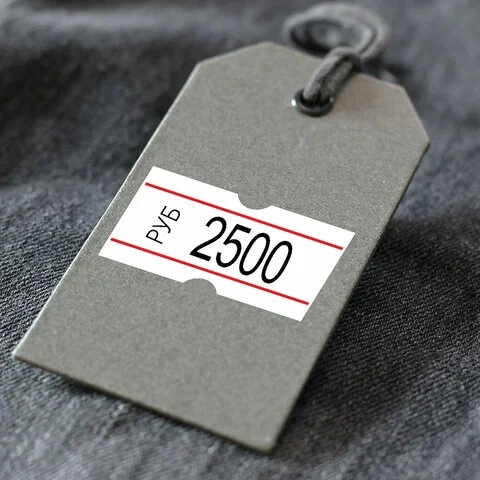 Цвет – белый с красной полосой, форма – прямоугольная. Один рулон содержит 1000 этикеток размером 21х12 мм. В комплекте 10 рулонов. Поставляются в термоусадочной пленке.