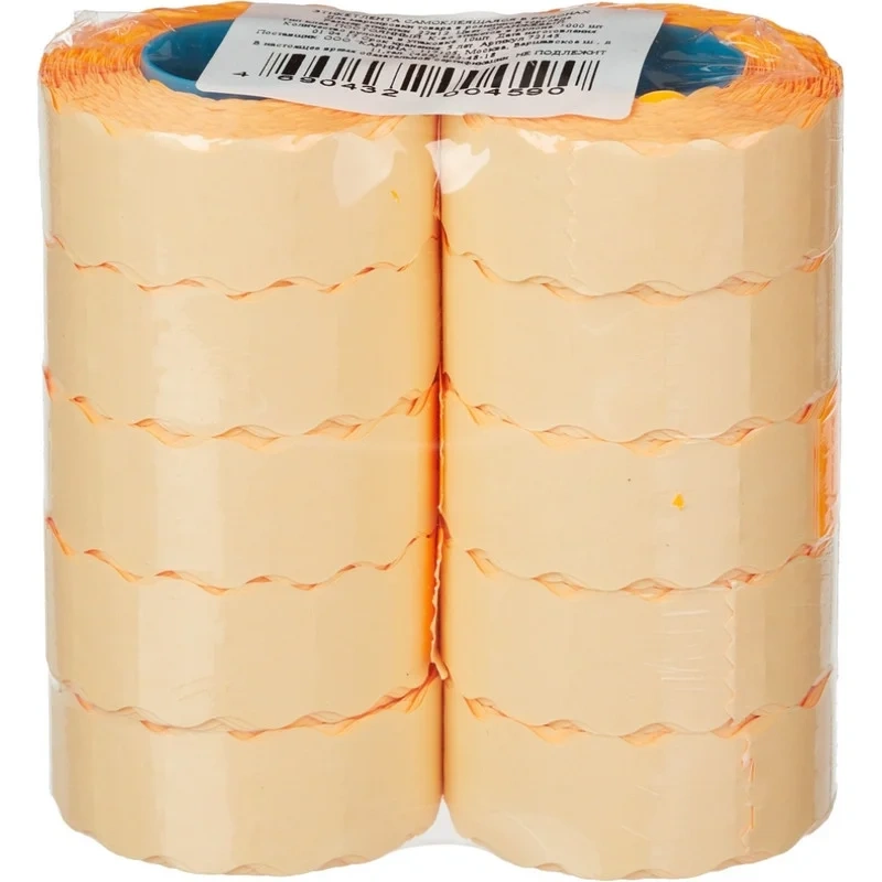 Этикет-лента волнистая 12х22мм, 1000шт/рул, 10рул, оранжевая