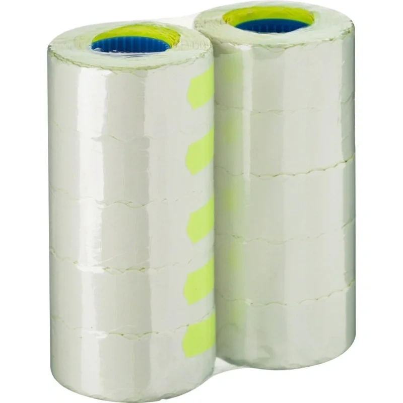 Этикет-лента является расходным материалом для этикет-пистолетов. Применяется для нанесения даты, времени, стоимости и другой информации в торговых сетях, на складах и т.д. Цвет зеленый, форма — волна. Один рулон содержит 1000 этикеток размером 22×12 мм, в упаковке 10 рулонов. Срок годности неограничен. Межэтикеточная перфорация в ассортименте. Цвет втулки зависит от производителя и может меняться от партии к партии, на качество этикет-ленты не влияет. Цвет втулки на работоспособность пистолета не влияет. Цвет втулки идет в ассортименте. Намотка этикеток на ролик может быть внутренняя и внешняя, на работоспособность этикет-ленты в этикет — пистолете это не влияет.