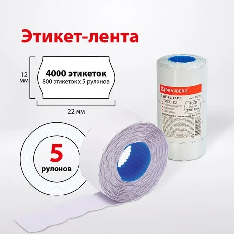 Этикет-лента волнистая Brauberg белые, 22х12мм, 800шт, 5 рулонов