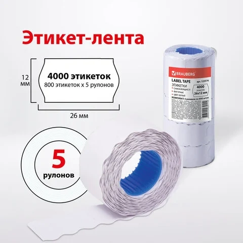 Этикет-лента волнистая Brauberg белые, 26х12мм, 800шт, 5 рулонов