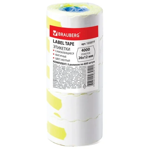 Этикет-лента волнистая Brauberg желтые, 26х12мм, 800шт, 5 рулонов