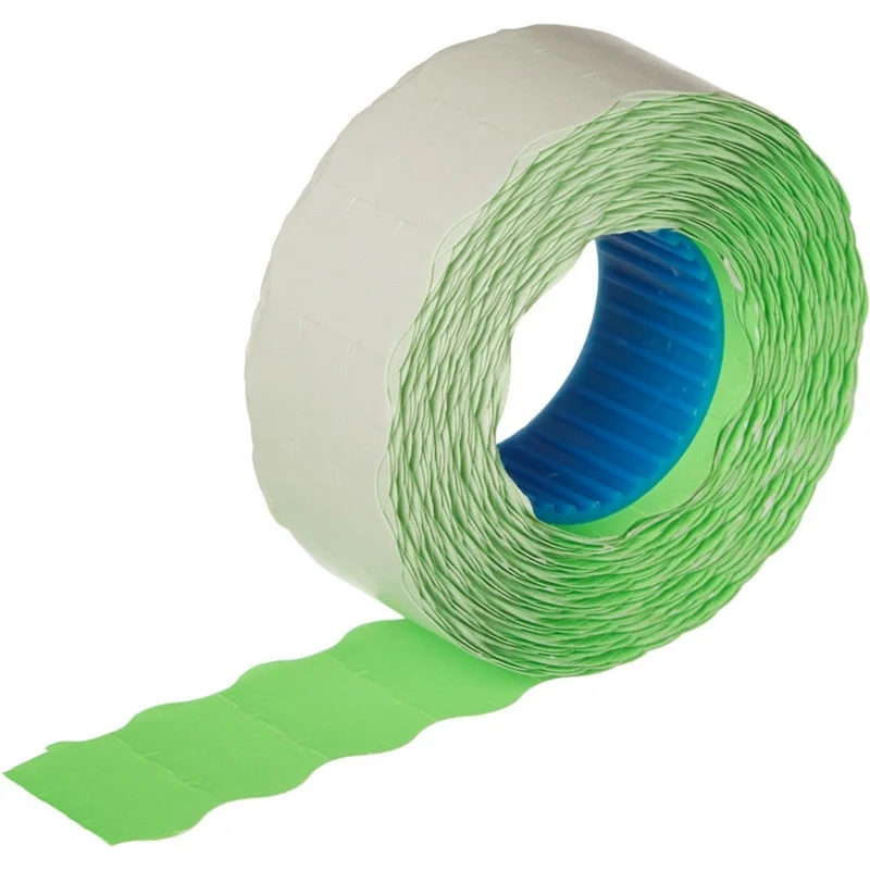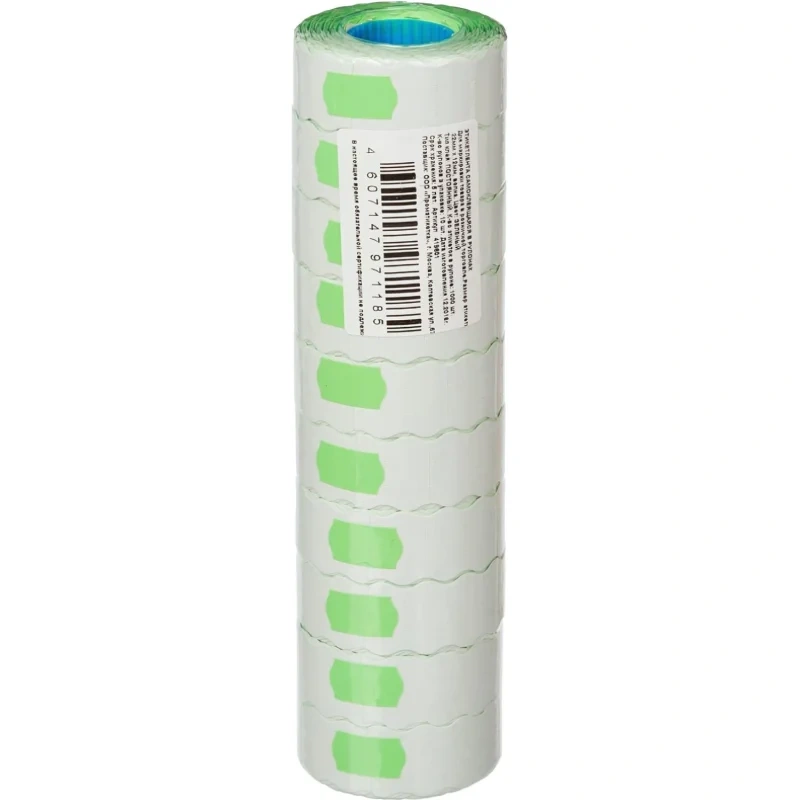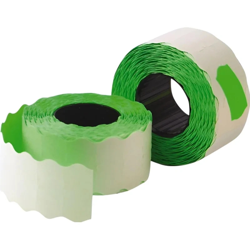 Этикет-лента зеленая волна 22×12. Применяется в этикет пистолетах для нанесения даты, времени, цены или других параметров в магазинах и супермаркетах. В одном ролике 1000 этикеток. Цвет втулки зависит от производителя и может меняться от партии к партии, на качество этикет-ленты не влияет. Цвет втулки на работоспособность пистолета не влияет. Цвет втулки идет в ассортименте. Допуски по количеству этикеток в рулоне, находятся в пределах +/- 5%. Намотка этикеток на ролик может быть внутренняя и внешняя, на работоспособность этикет-ленты в этикет — пистолете это не влияет.