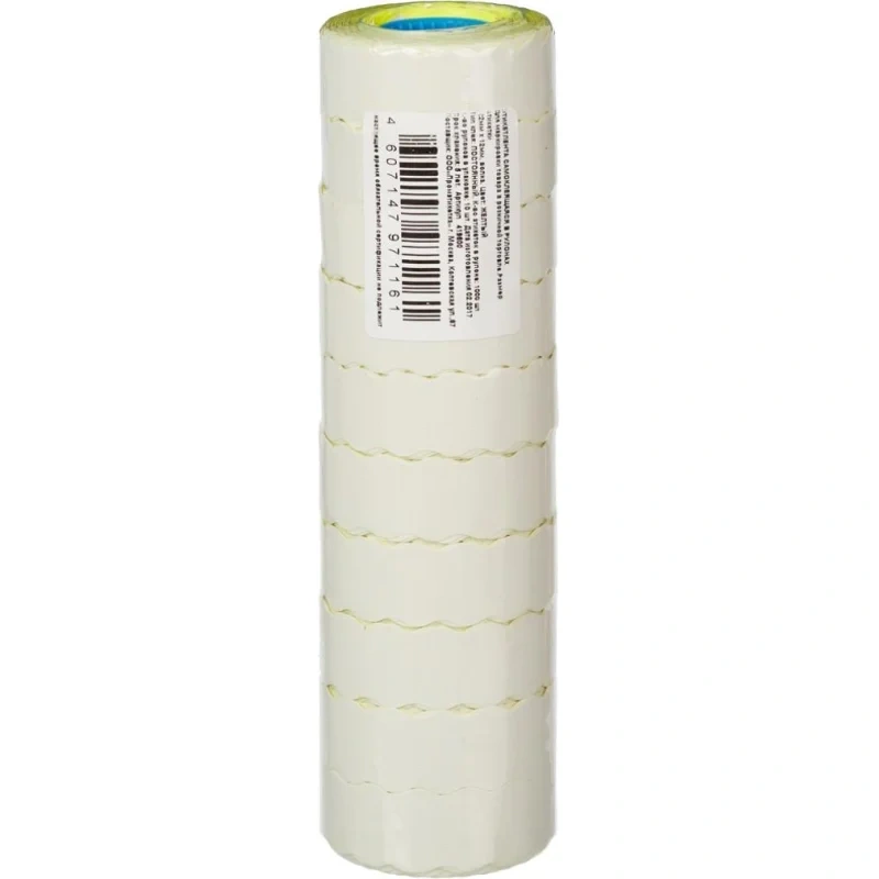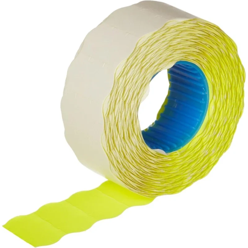 Этикет-лента желтая волна 22×12. Применяется в этикет пистолетах для нанесения даты, времени, цены или других параметров в магазинах и супермаркетах. В одном ролике 1000 этикеток. Цвет втулки зависит от производителя и может меняться от партии к партии, на качество этикет-ленты не влияет. Цвет втулки на работоспособность пистолета не влияет. Цвет втулки идет в ассортименте. Допуски по количеству этикеток в рулоне, находятся в пределах +/- 5%. Намотка этикеток на ролик может быть внутренняя и внешняя, на работоспособность этикет-ленты в этикет — пистолете это не влияет.