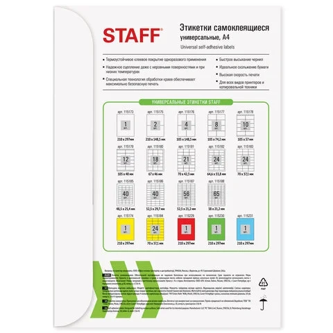 Этикетки самоклеящиеся Staff 105х48мм, белые, 12шт, 100 листов