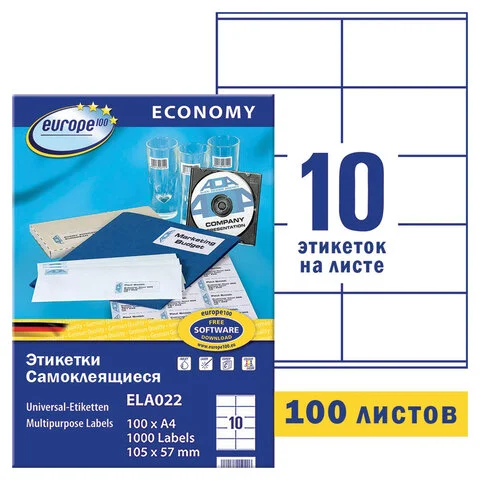 Этикетка самоклеящаяся 105х57 мм, 10 этикеток, белая, 70 г/м2, 100 л., Avery, Европа-100, ELA022