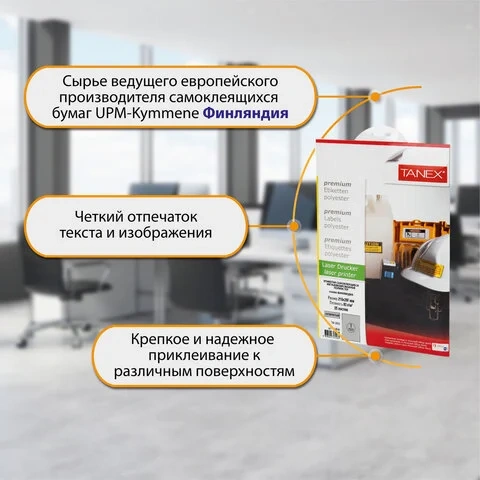 Этикетка самоклеящаяся 210х297 мм, 1 этикетка, полиэстер, серебро, 25 листов, TANEX, сырье Финляндия