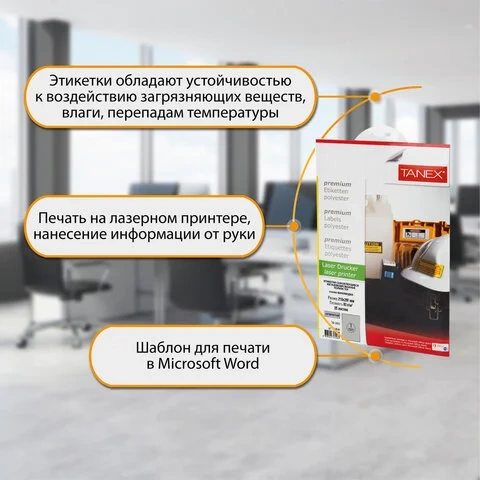 Изготовлены из полиэстра серебристого цвета плотностью 80 г/м2. Этикетки обладают устойчивостью к воздействию загрязняющих веществ, влаги, перепадам температуры. Совместимы с лазерными принтерами. Упаковка содержит 25 листов формата А4, на каждом листе – одна этикетка размером 210х297 мм.