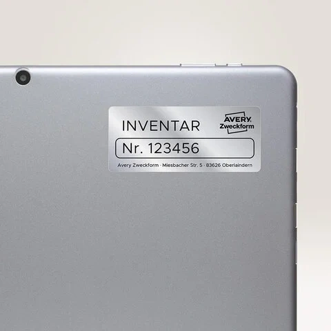 Изготовлены из полиэстера серебристого цвета плотностью 78 г/м2. Этикетки надежно приклеиваются на различные гладкие и неровные поверхности. Идеальное решение для архивов и дорогостоящих товаров, электронного оборудования, маркировки инвентаря, электронных компонентов, указания паспортных данных, инвентарной описи. Особо прочные этикетки устойчивы к воздействию загрязняющих веществ, влаги, перепадов температуры. Масло- и УФ-стойкие, моющиеся, грязеотталкивающие. Совместимы с черно-белыми лазерными принтерами. Упаковка содержит 20 листов формата А4, на каждом листе - одна этикетка размером 210x297 мм.