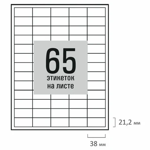 | Количество этикеток на листе | 65 шт. |