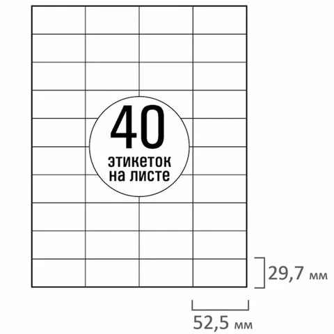 | Количество этикеток на листе | 40 шт. |