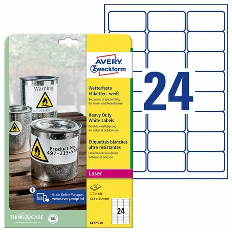 Этикетки самоклеящиеся Avery Zweckform 63.5х33.9 мм, белые, 24 этикетки, 20 листов