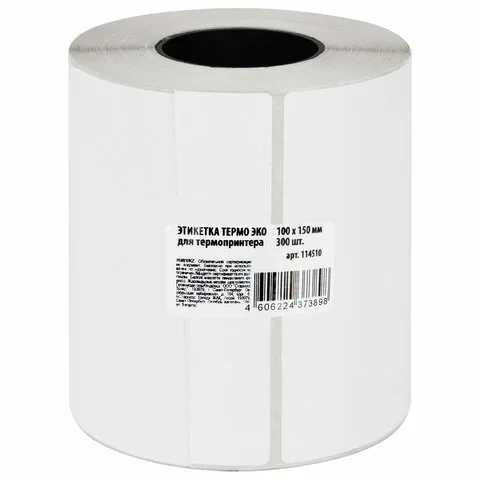 Этикетка ТермоЭко (100х150 мм), 300 этикеток в ролике, прозрачная подложка, светостойкость до 2 меся