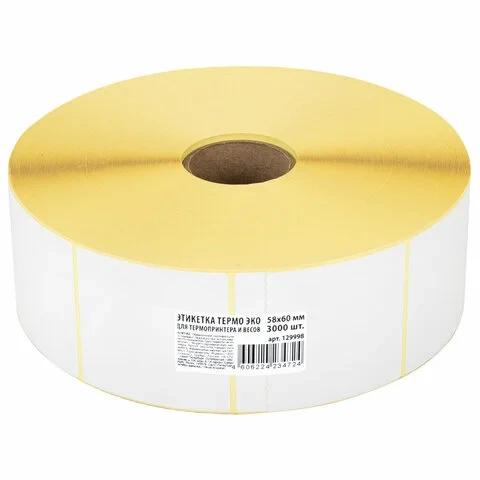 Этикетка ТермоЭко (58х60 мм), 3000 этикеток в ролике, светостойкость до 2 месяцев, 129998